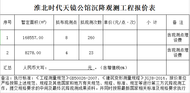 時代天境公館沉降觀測詢價公告