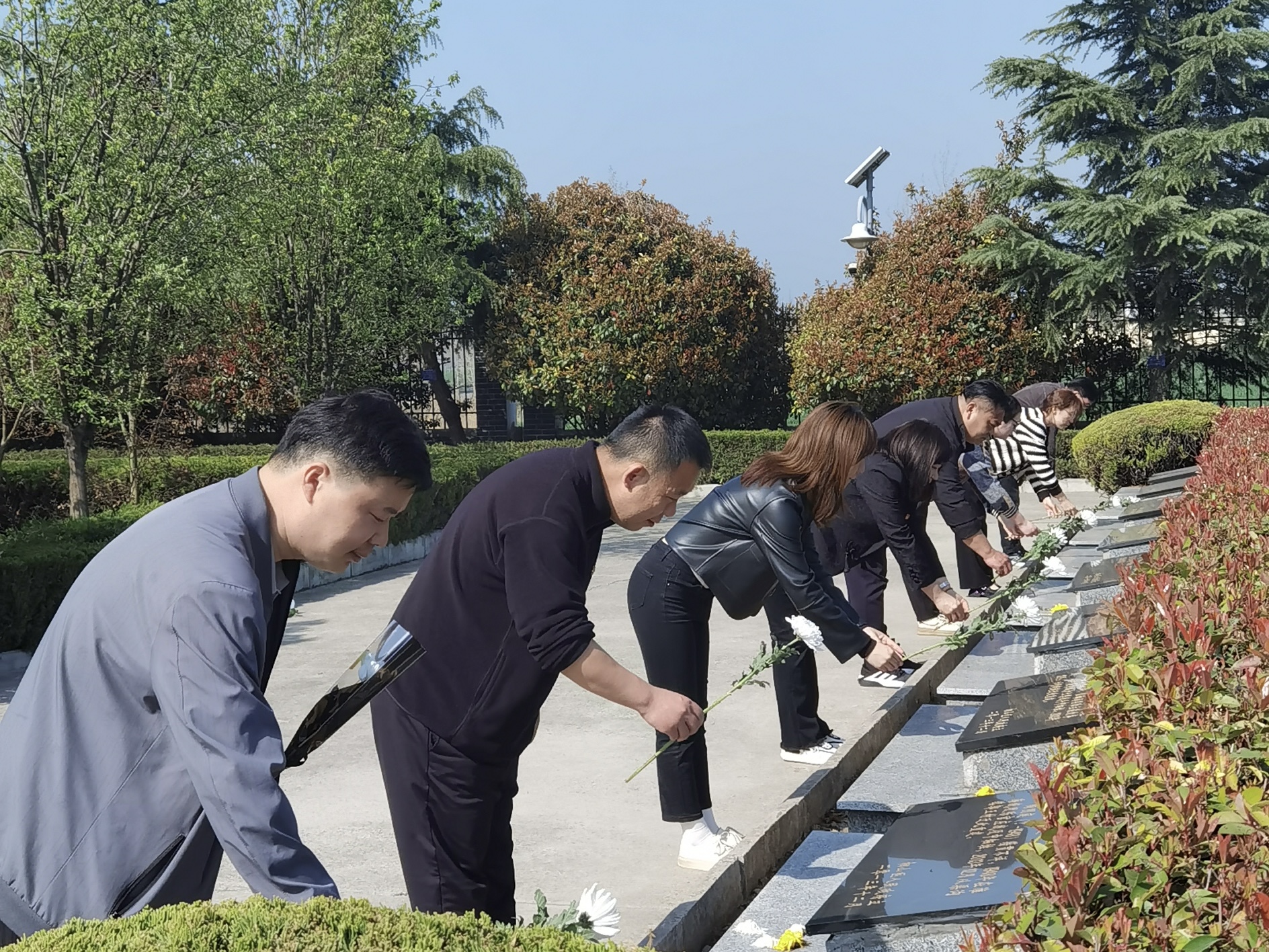 面對(duì)烈士紀(jì)念碑,大家懷著崇敬的心情,排著整齊的隊(duì)伍,繞墓碑一周,依次敬獻(xiàn)鮮花,并深深鞠躬,表達(dá)對(duì)烈士們英勇無(wú)畏的敬仰。整個(gè)活動(dòng)莊嚴(yán)肅穆、井然有序,給大家上了一節(jié)生動(dòng)的思想教育課。