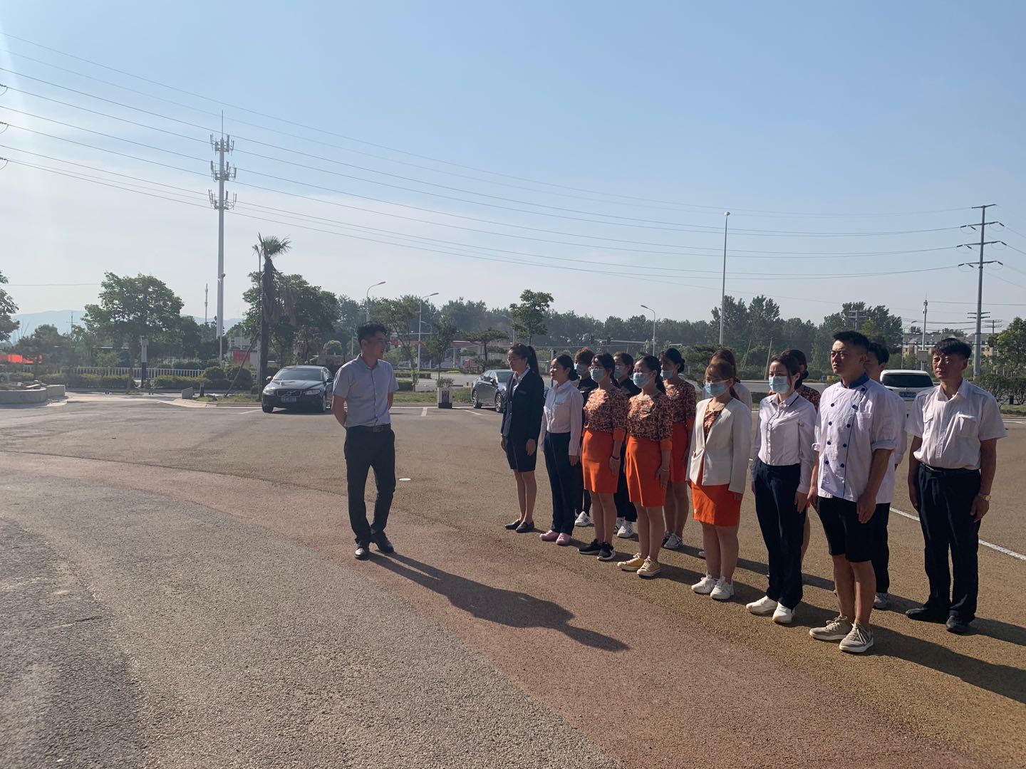 2020年6月8日上午8時(shí)許,淮北市南湖酒店運(yùn)營(yíng)管理有限公司黨支部在酒店停車(chē)場(chǎng)進(jìn)行了“增強(qiáng)精神面貌、提升服務(wù)質(zhì)量”為主題的軍事化訓(xùn)練。