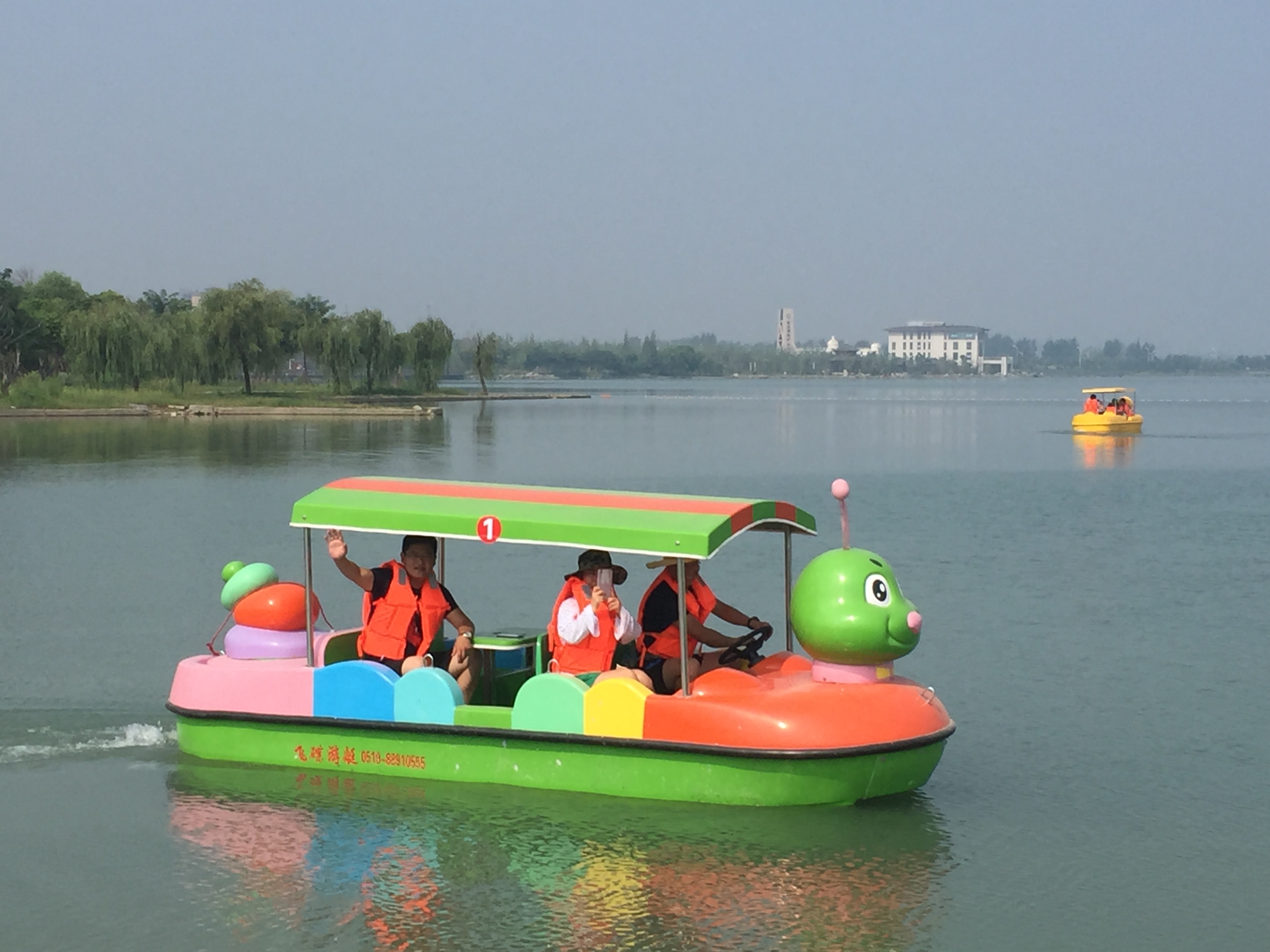 本次投入運營的20艘電動游船有卡通昆蟲系列、卡通大黃鴨系列、卡通汽車系列等,并有4人座、6人座供游客選擇。