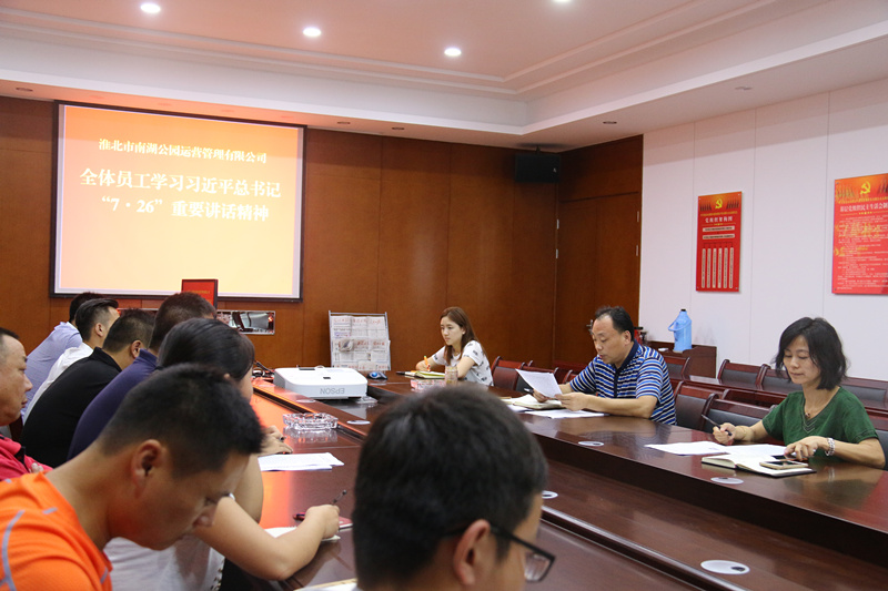 8月22日,南湖公園運營管理有限公司通過會議集中學習的形式,向全公司人員傳達了習近平總書記“7·26”重要講話精神。