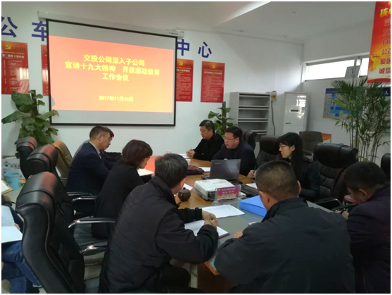 11月13日-16日,市建投控股集團有限公司派駐交投公司紀檢人員,以集團公司黨的十九大精神宣講活動為契機,深入交投公司下屬8家子公司開展廉政教育活動,對1家駐外子公司召開了視頻會議。