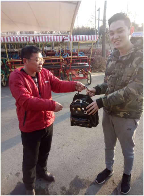 12月21日下午3點(diǎn)半,一位來(lái)自河南的游客在乘坐南湖景區(qū)觀光車游覽時(shí),不慎將隨身攜帶的背包遺忘,被南湖景區(qū)電瓶車班長(zhǎng)朱德標(biāo)及時(shí)發(fā)現(xiàn),并通過(guò)身份證上的信息物歸原主。失主對(duì)朱德標(biāo)這種拾金不昧精神和急游客所急的服務(wù)態(tài)度感到萬(wàn)分感謝,激動(dòng)地說(shuō):“非常感謝,要是沒(méi)有錢包和證件我此后的行程會(huì)有很大影響,南湖人真是好!”。