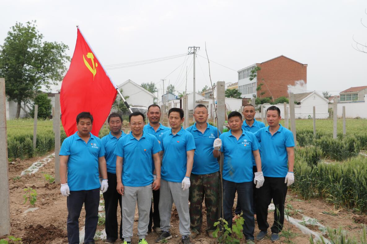 城泊公司為扶貧戶(hù)邵氏種植的100株葡萄樹(shù)苗在初夏的陽(yáng)光下正茁壯成長(zhǎng)。5月17日,城泊公司黨支部利用黨員活動(dòng)日組織黨員為扶貧葡萄樹(shù)安裝葡萄架。