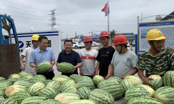 時(shí)值炎炎夏日、酷暑三伏,臨投公司各在建項(xiàng)目施工一線人員依然堅(jiān)守在工作崗位上,為煤化工基地的發(fā)展揮灑著汗水。為了給施工一線人員送去絲絲清涼和關(guān)懷,臨投公司于7月18日前往火神廟村貧困戶戴鳳英家購買了愛心西瓜2200斤,并赴各在建項(xiàng)目現(xiàn)場(chǎng),將愛心西瓜送到了施工一線人員手中,向他們?cè)诟邷乜崾钪械男量鄤趧?dòng)表示慰問,并要求各施工單位做好防暑降溫工作,確保施工安全。